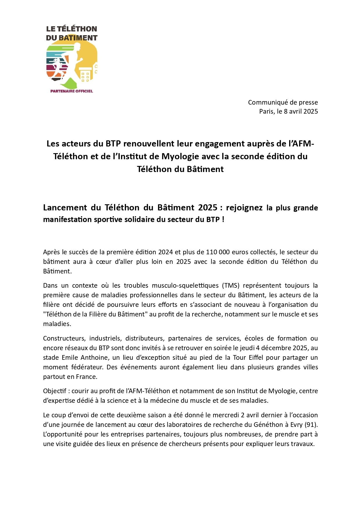 lemoniteur.fr revient sur la participation de SIDER au premier Téléthon du Bâtiment !